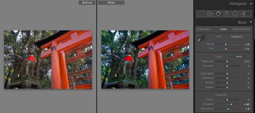 ปรับแค่ Vibrance ค่ะเพราะต้องการสีสดเฉยๆ โดยปรับแบบนี้ใน camera 360 ก็ทำได้[/col3]