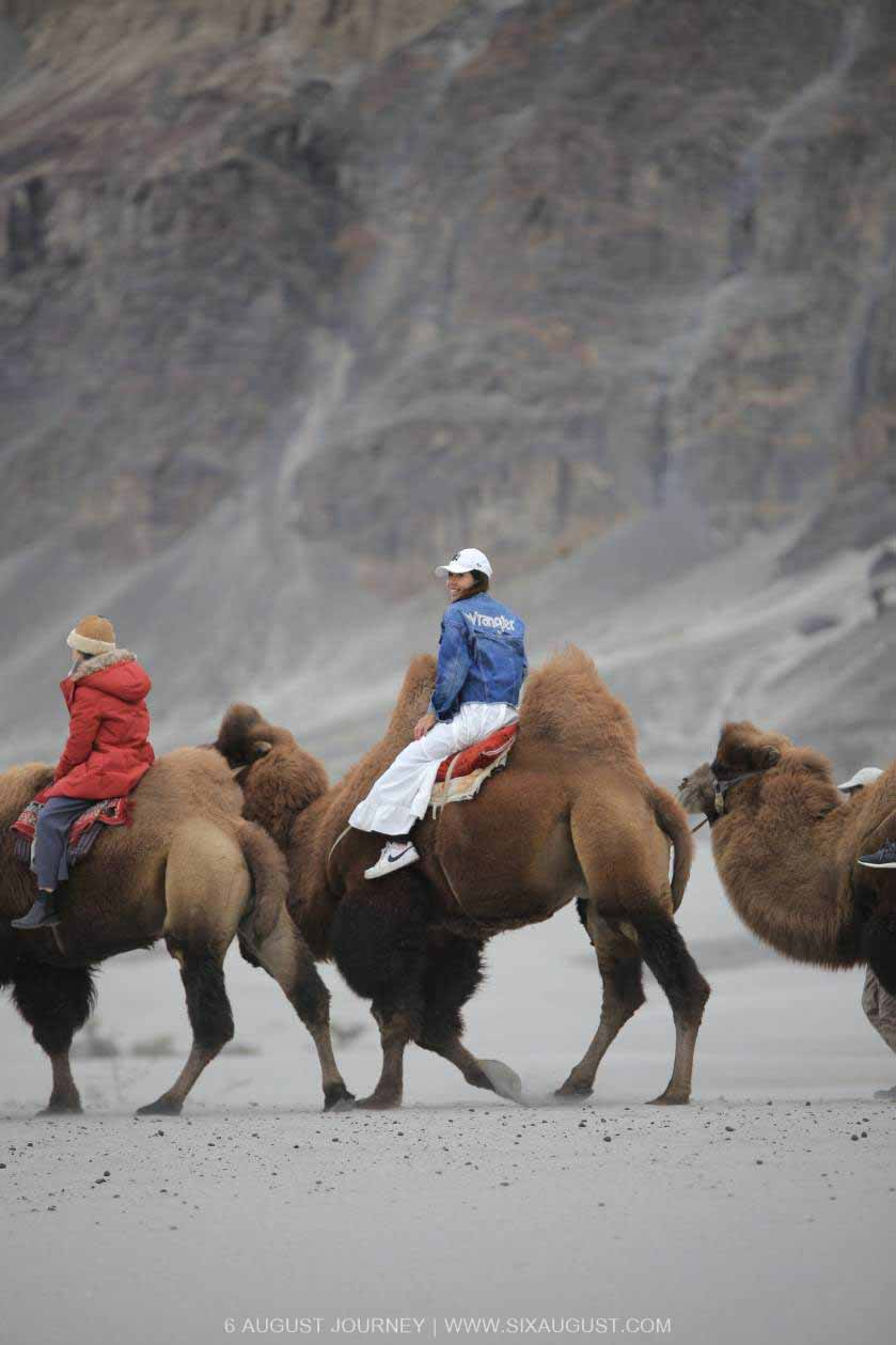 พอเข้าสู่ Nubra นี่เหมือนมาอีกซีกโลกคือกลายเป็นทะเลทราย แต่ไม่ได้สีขาว หรือ แดงแบบมุยเน่ที่เวียดนามนะ ทรายที่นี่ออกแนวเทาๆ และมีเหมือนพืชในสะวันนาขึ้นอยู่ ทริปนี้มันสุดจริง หนาว หิมะ ใบไม้เปลี่ยนสี ตอนนี้มาทะเลทรายแล้ว แต่ทะเลทรายที่นี่หนาวมากจ๊ะนายจ๋า