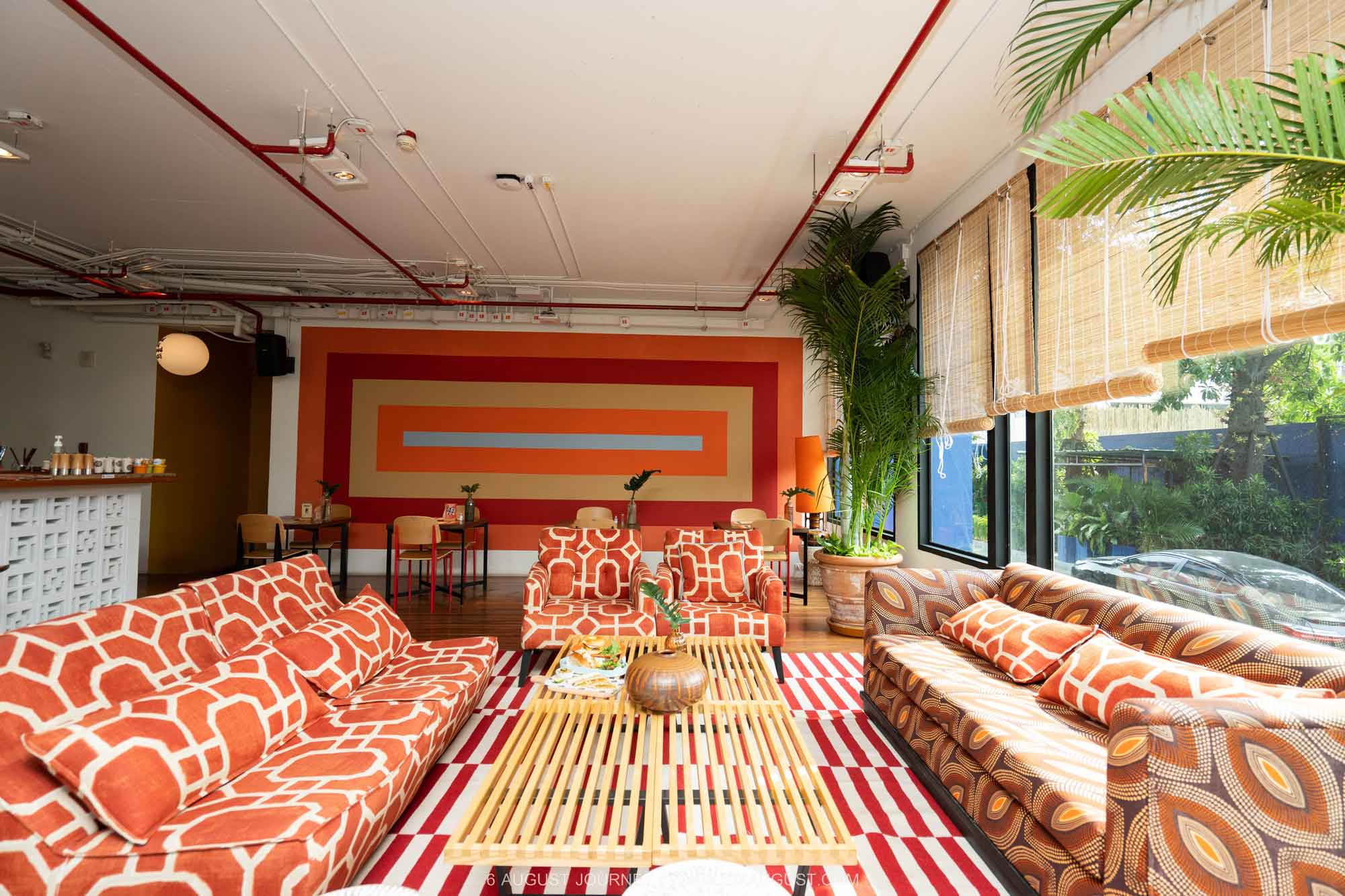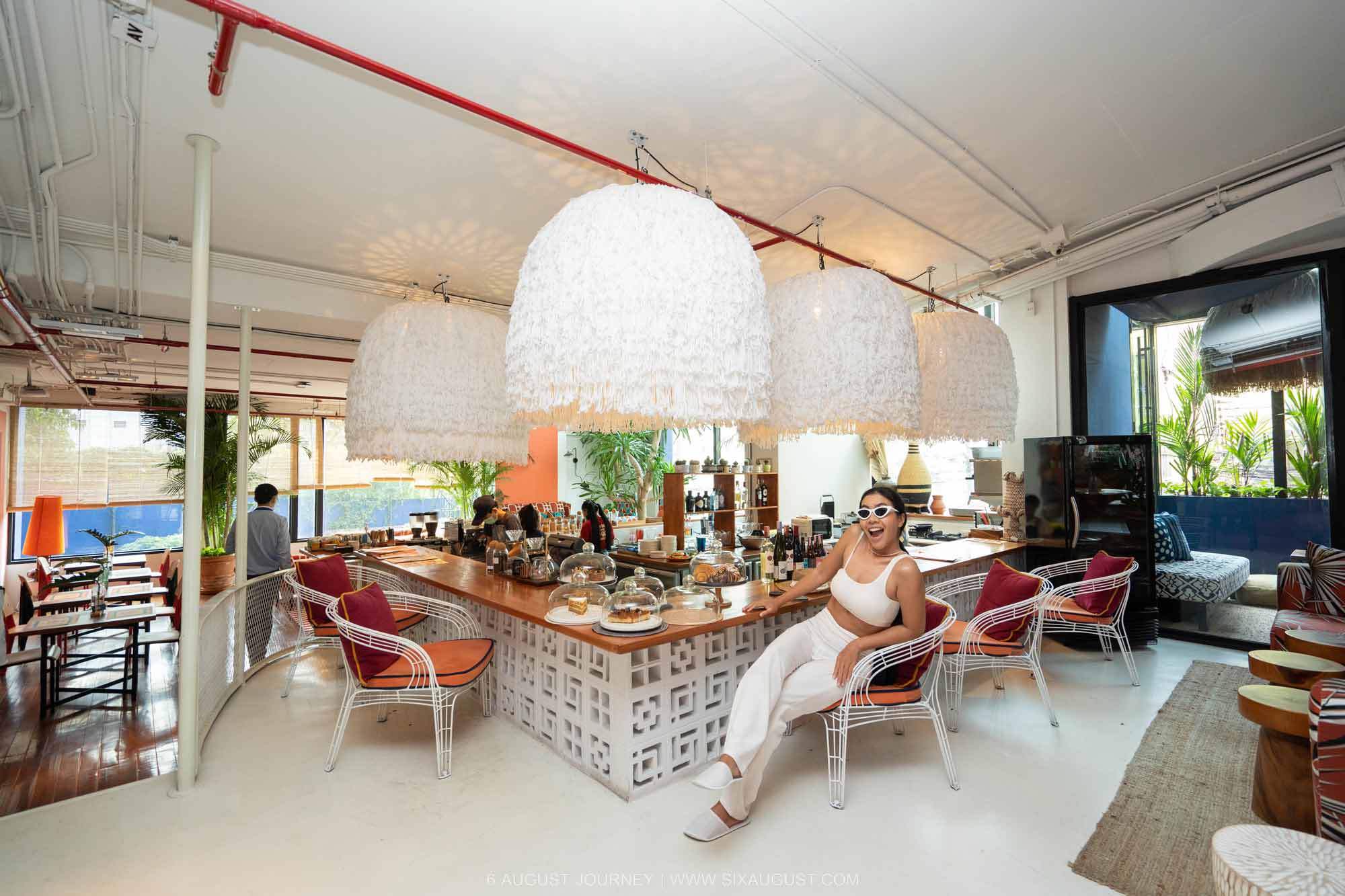 ดีไซน์แต่ละจุดไม่เหมือนกันด้วย ทางเข้าคือเหมือนนั่งริมชายหาด สีสันสดใส พร้อมเก้าอี้ไม้สวยๆ ความสูงประมาณเก้าอี้ชายหาด พอเดินเข้าไปข้างในอีกระดับก็จะเจอชิงช้าเก๋ๆ ให้นั่งเล่น